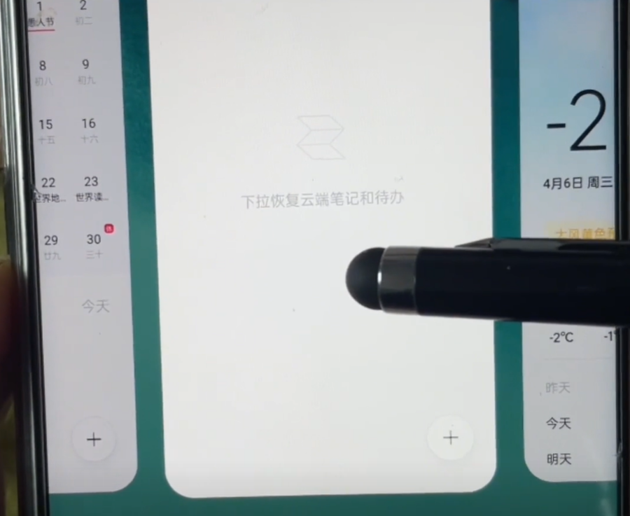 下面,我给朋友们讲一下最左边这个三条杠按键,也就是后台键的使用方法,我们点击一下左边这个按键,进去可以进入手机的后台程序。我们看到我们刚刚用过的所有应用都出现这里了,有微信,音乐,日历,便签,视频等等,他们,还在后台运行,大家看到了吧,并且没有彻底退出。这就说明我们无论用返回键还是主屏键,都无法彻底完全地退出应用程序。