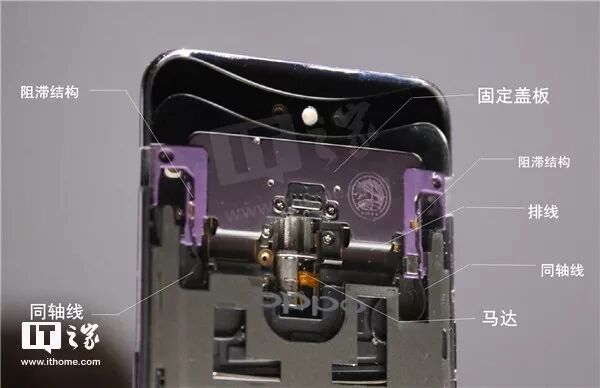 简单来说,双轨潜望结构就是通过一枚步进马达驱动搭载摄像头以及诸多传感器的独立结构模块升降,从而完成拍照、感应等功能的结构,它主要由一枚螺旋步进马达、摄像头、传感器等电路模块、阻滞结构、排线以及固定盖板组成。它们各自的功能如下: