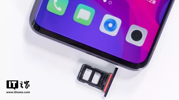OPPO Find X机身顶部为红外线发射器、降噪Mic、底部从左到右依次为扬声器、通话Mic,USB Type-C插孔和SIM卡槽,没有3.5mm耳机孔。为了节省底部的空间,SIM卡槽被做成了正反卡托的设计,同时卡托顶端有一层橡胶圈,足见做工精细。Find X整机拥有三枚物理按键,分别是机身右侧的电源键和左侧的音量加减按键。